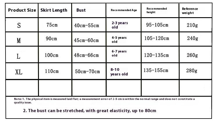 Suitable height: S(2-3T),M(4-5Y),L(6-7Y),XL(8-10Y)