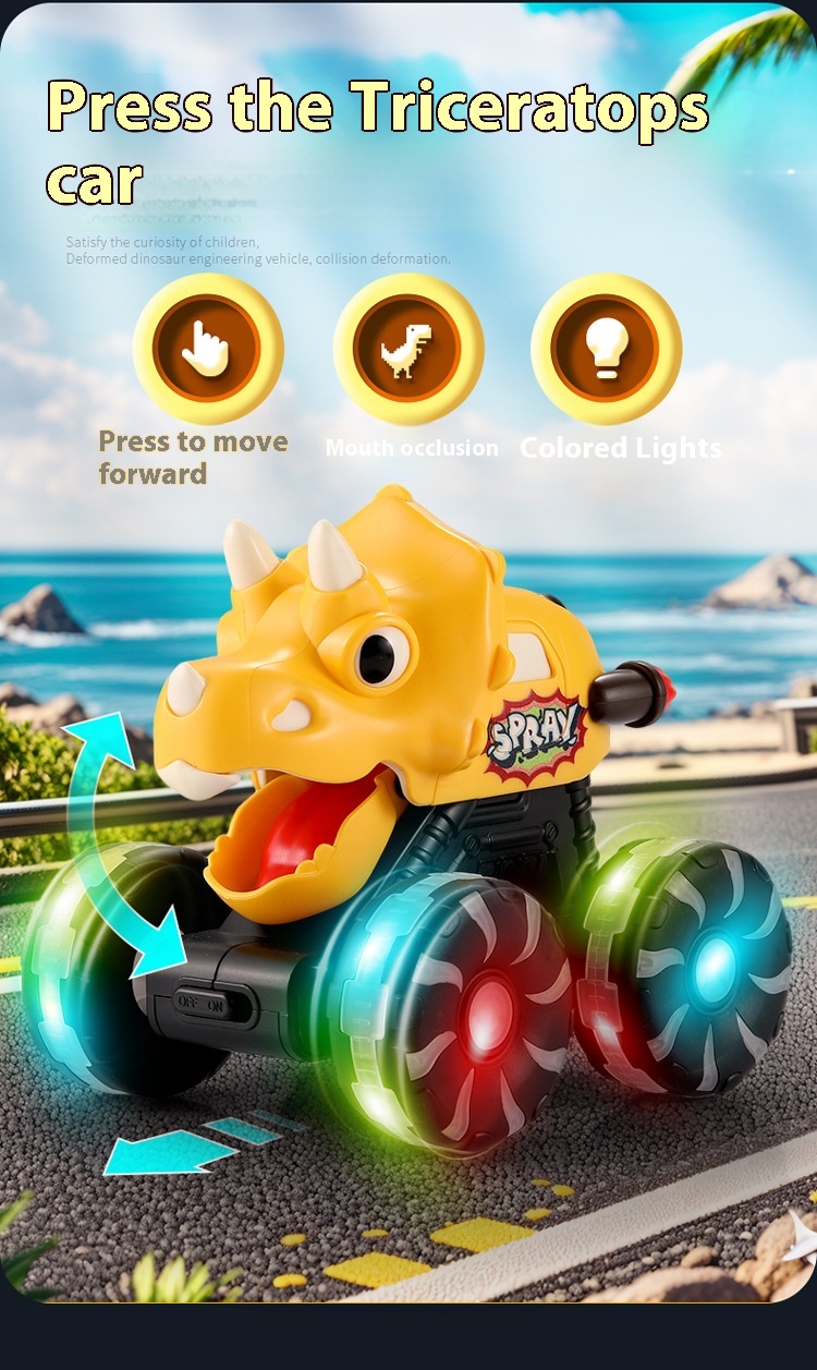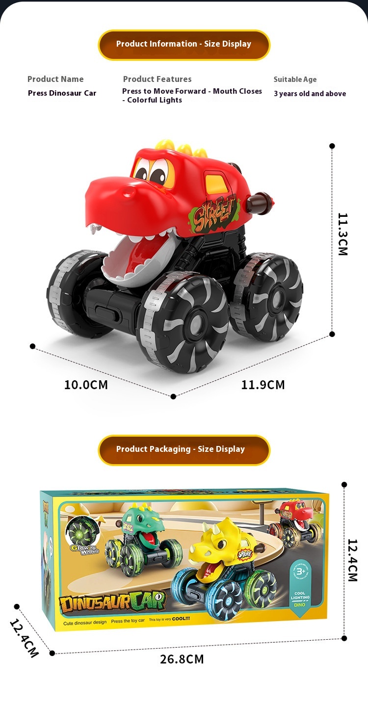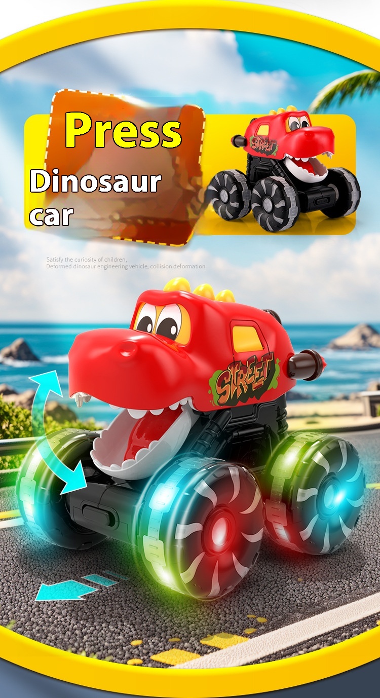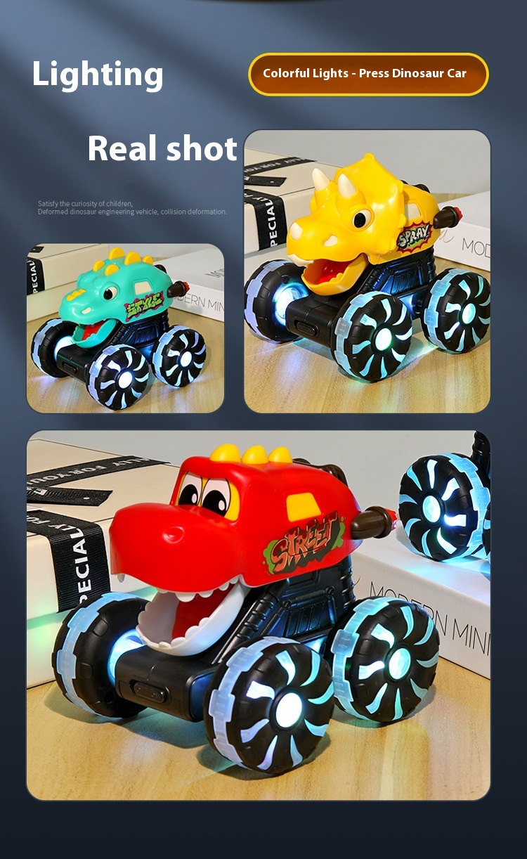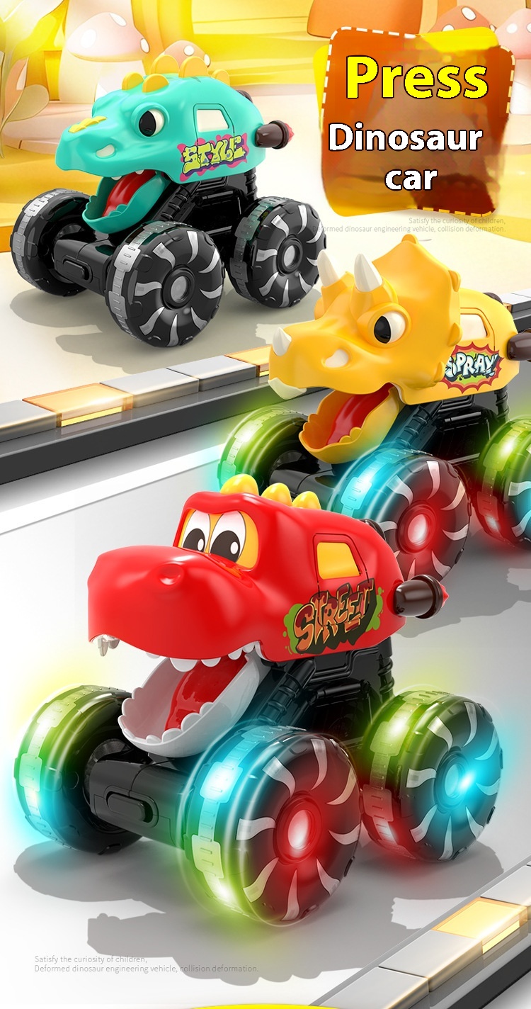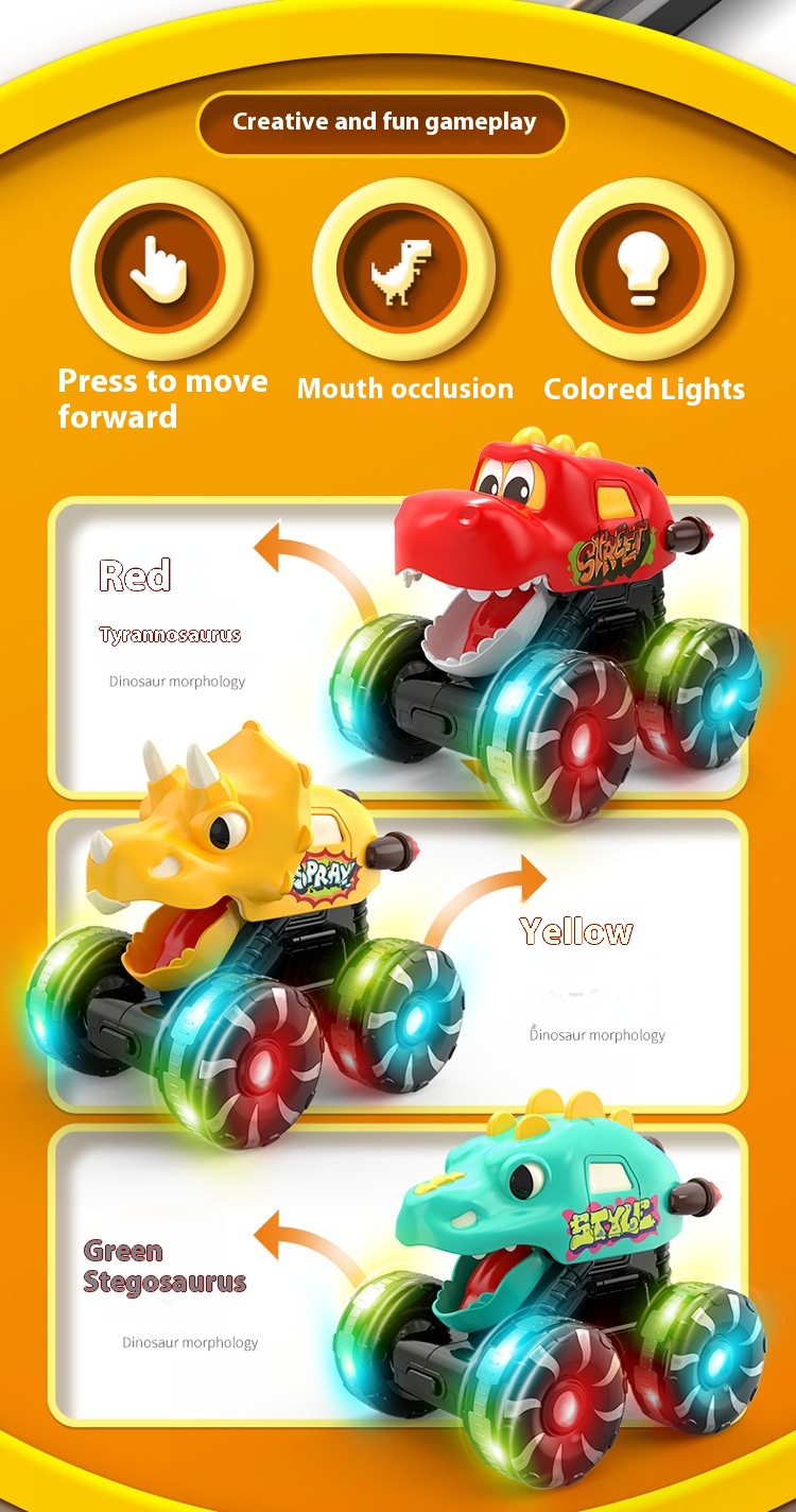 Color: by light dinosaur car-red Tyrannosaurus, by light dinosaur car-yellow Triceratops, by light dinosaur car-green Stegosaurus, by light dinosaur car-three combinations